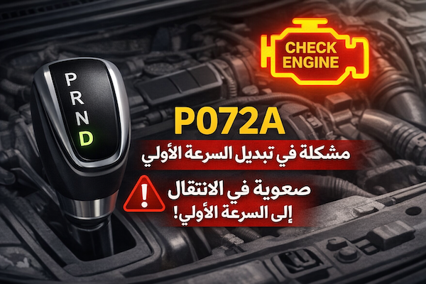 يسجل كود P072A عندما تكتشف وحدة التحكم في ناقل الحركة ان الغيار الاول لم يتم تعشيقه رغم صدور الامر بذلك. الوحدة تقارن بين الغيار المطلوب (Desired Gear) والغيار الفعلي (Actual Gear) عبر حساسات السرعة، وعند عدم تحقق التعشيق خلال الزمن المسموح يتم تسجيل الكود. الزاوية هنا ان المشكلة ليست بالضرورة كهربائية بحتة، بل قد تكون نتيجة ضعف ضغط، انزلاق كلتش، او خلل ميكانيكي يمنع اكتمال التعشيق.